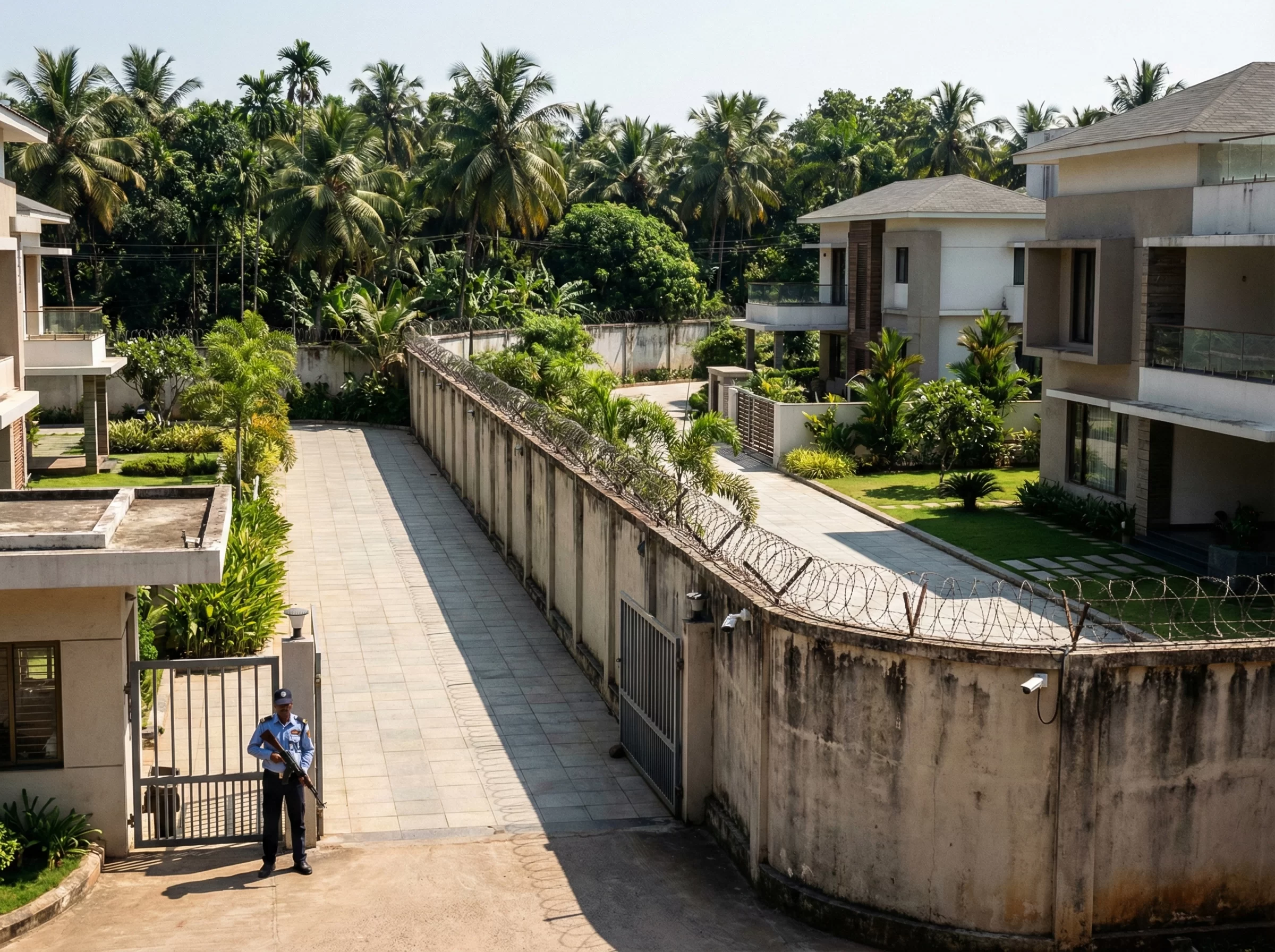 Специально для инженеров и рядовых строителей корпорация возвела изолированный городок. Эта охраняемая территория напоминает неприступную крепость: заборы с колючей проволокой, строгая охрана на пропускных пунктах, тотальный контроль периметра. Внутри царит удивительная атмосфера благополучного подмосковного микрорайона, словно перенесенного в другой конец света. Асфальтированные аллеи, современные спортивные площадки, медицинский центр с квалифицированными русскоязычными врачами.