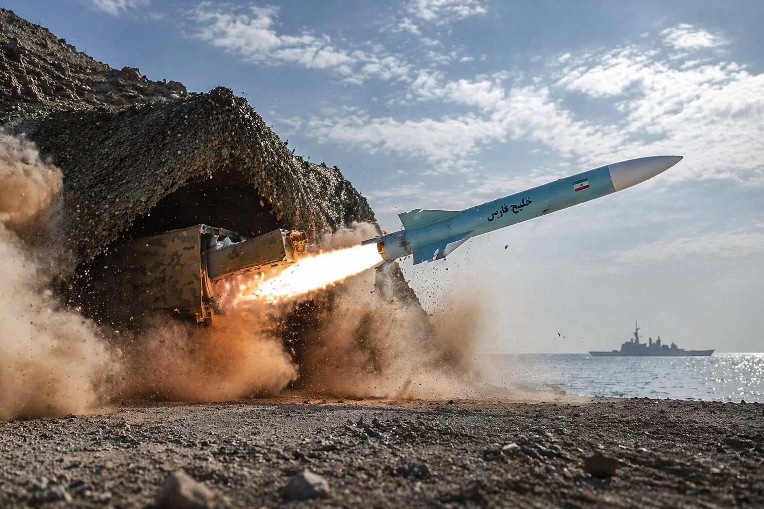 В случае попытки прорыва или блокады корабельная группировка США столкнётся с комбинированной системой поражения, не имеющей аналогов по плотности огня в столь ограниченной акватории. Первый эшелон составляют баллистические противокорабельные ракеты «Халидж Фарс» (Khalij Fars). Их ключевая особенность — оптико-электронная головка самонаведения, работающая на конечном участке траектории. Пикируя на движущуюся цель со скоростью, достигающей 4 Махов, ракета способна выполнять резкие противозенитные манёвры. Осколочно-фугасная боевая часть весом 650 кг гарантированно выводит из строя даже тяжёлый авианосец при одном попадании. Дальность поражения в 300 км позволяет иранцам бить по целям ещё до их входа в узкость.