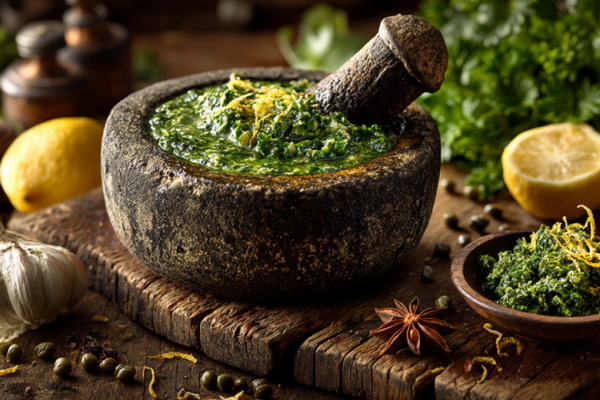 Этот соус — настоящий кулинарный хамелеон, который мгновенно адаптируется под любое блюдо. Секрет его характера — в балансе травяной свежести, солоноватых ноток каперсов и цитрусовой кислинки.