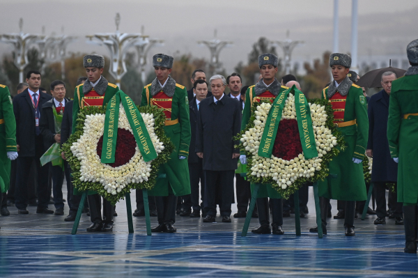 В рамках мероприятий форума, посвященного Международному году мира и доверия, Президент Касым-Жомарт Токаев совместно с главами других государств принял участие в церемонии возложения венков к Монументу Нейтралитета, символизирующему приверженность Туркменистана идеалам мира и созидания.